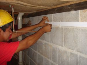 - The structural reactions are monitored by a trained professional. Spacers are inserted on concrete blocks for extra support.