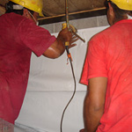 Next, we’ll drill weep holes in block walls as needed. This allows water that enters the voids in the bricks to drain into the Water Lock™ Plus System.
