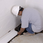 First, we break through the concrete in the repair areas and remove any debris. The breakout is no wider than 6”–8” in most cases. We then dig down to the footer.