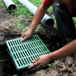 Special 12″ x 12″ Low Profile Basins are installed at appropriate intervals along the system. It is important to tie gutter downspouts (if available) into the Olshan Drainage System.